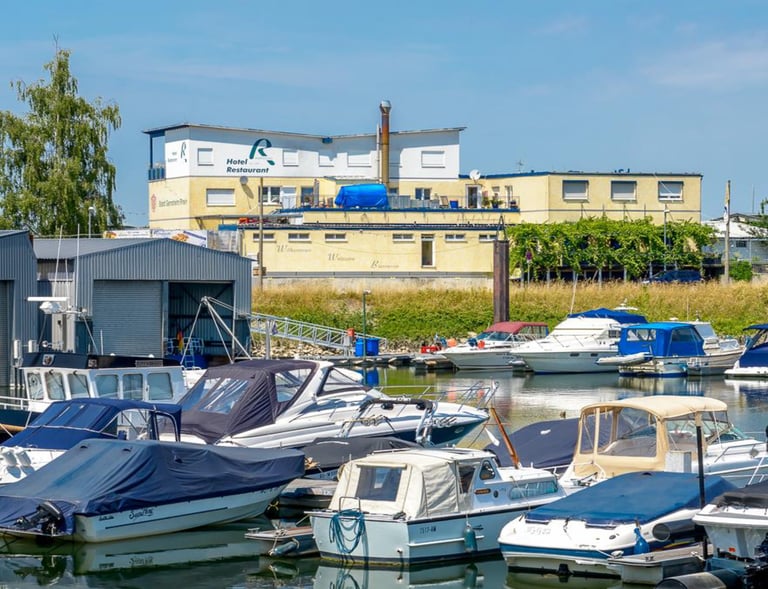 exklusiver Blick zu Rhein oder Yachthafen
